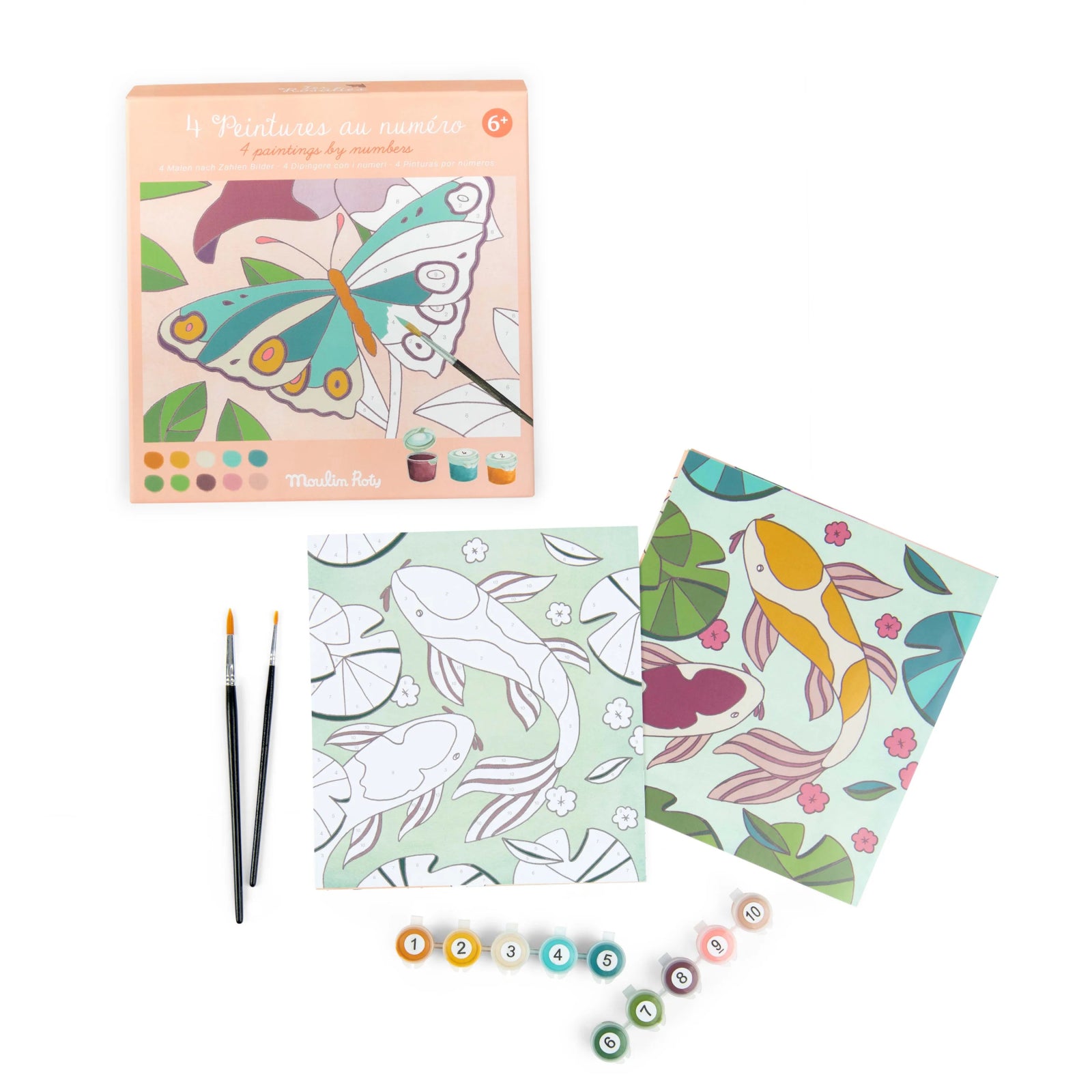 Ce kit, qui comprend quatre superbes illustrations de Cécile Blindermann, contient tout le nécessaire pour les jeunes artistes : 2 pinceaux et 10 pots de peinture acrylique aux couleurs éclatantes.